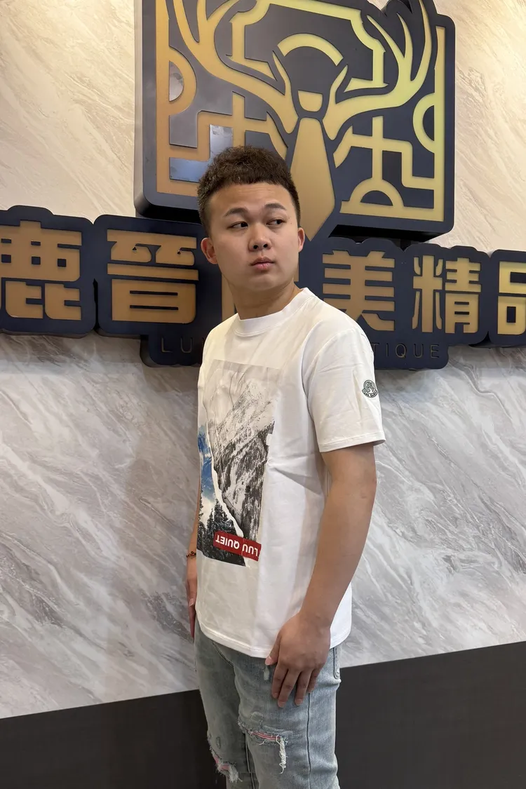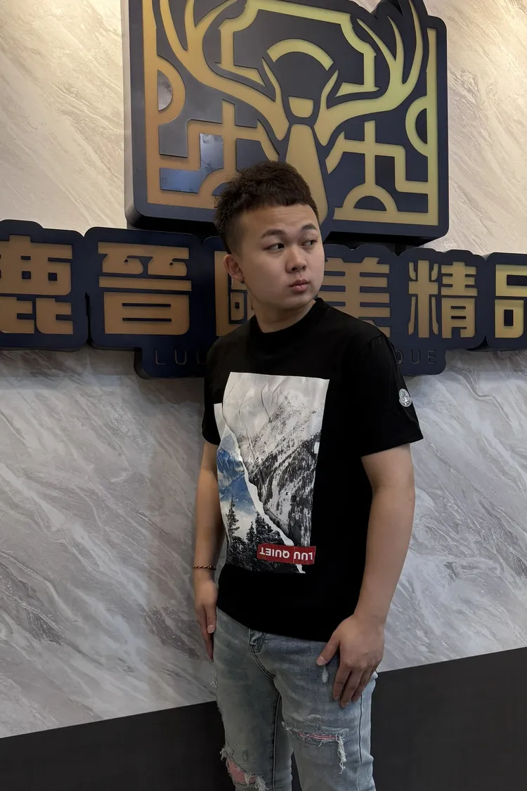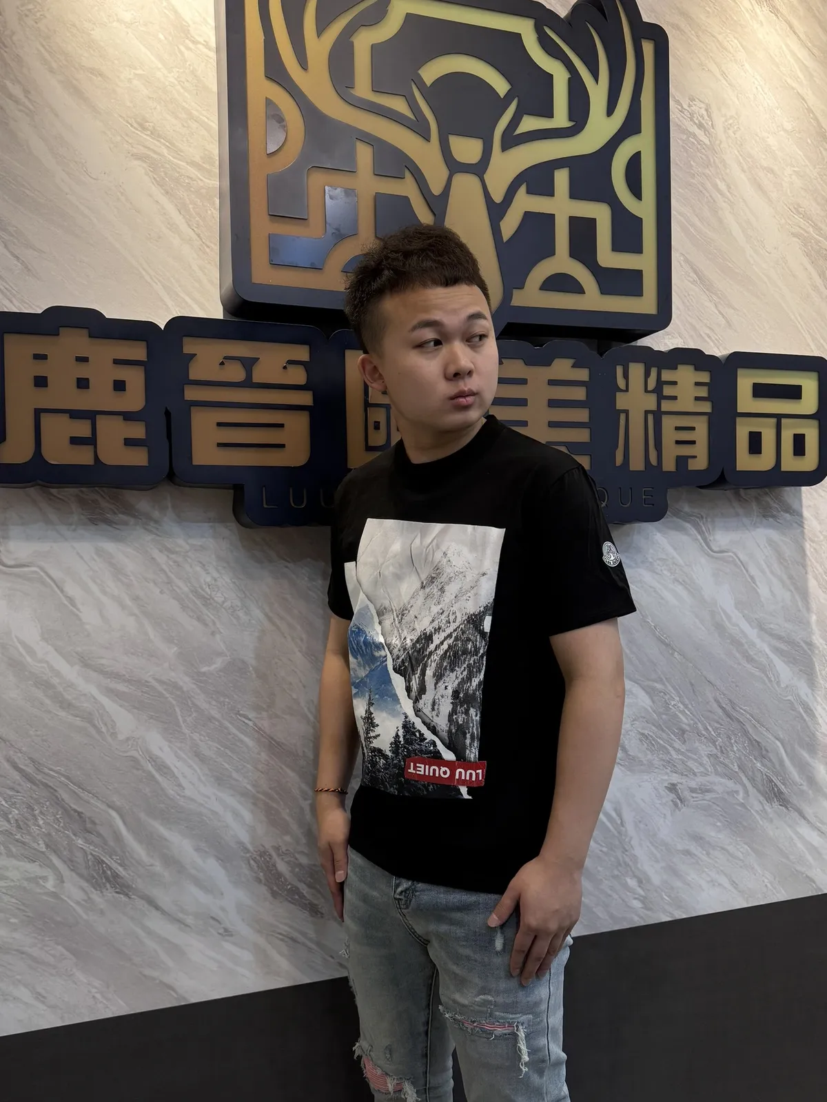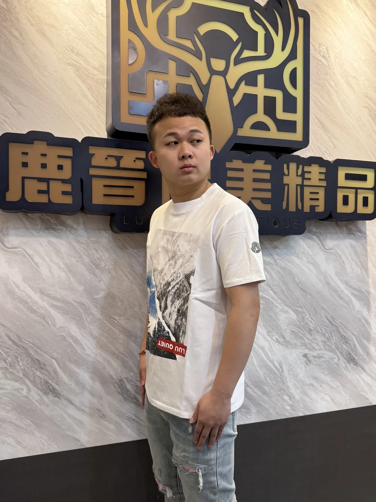 【Luu Quiet】灰藍山景畫手臂品牌徽章短袖