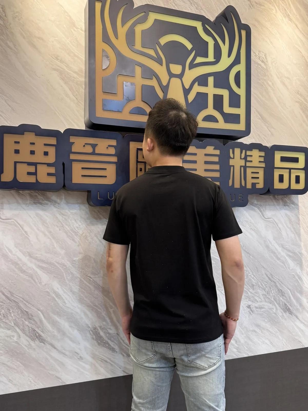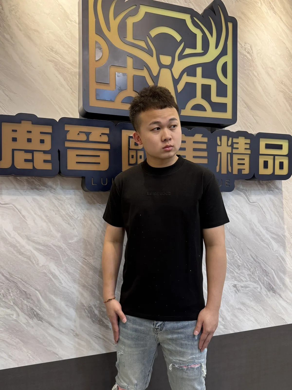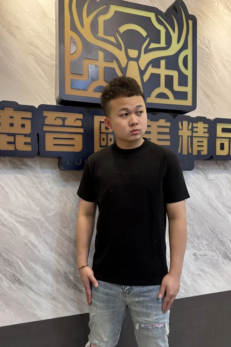 【Luu Quiet】滿版點綴珠中間品牌徽章短袖T恤