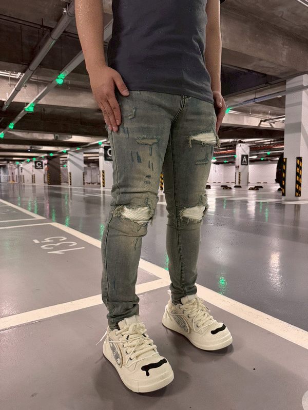 【Luu Quiet】23代質感仿舊白/綠壓軸牛仔褲