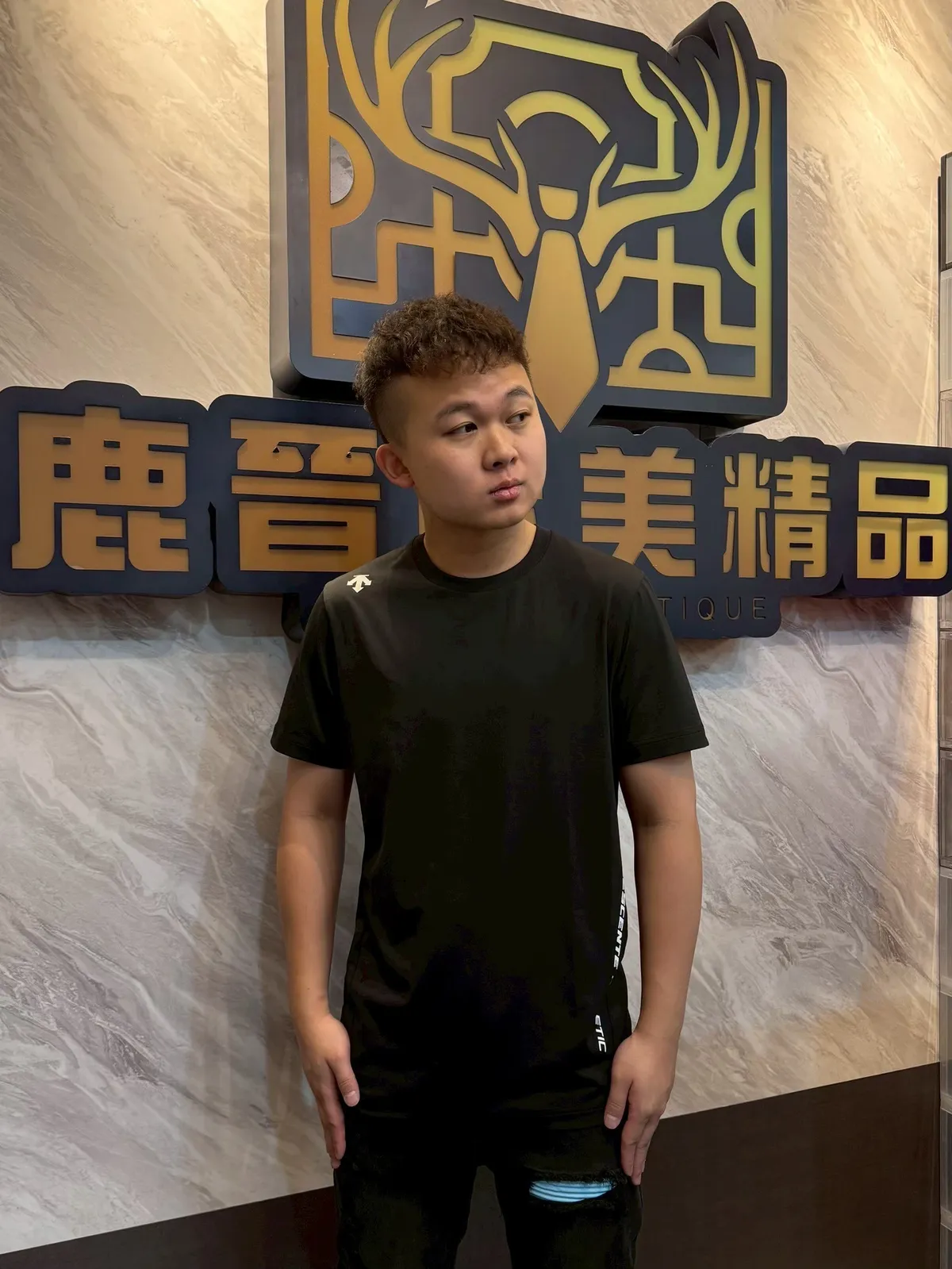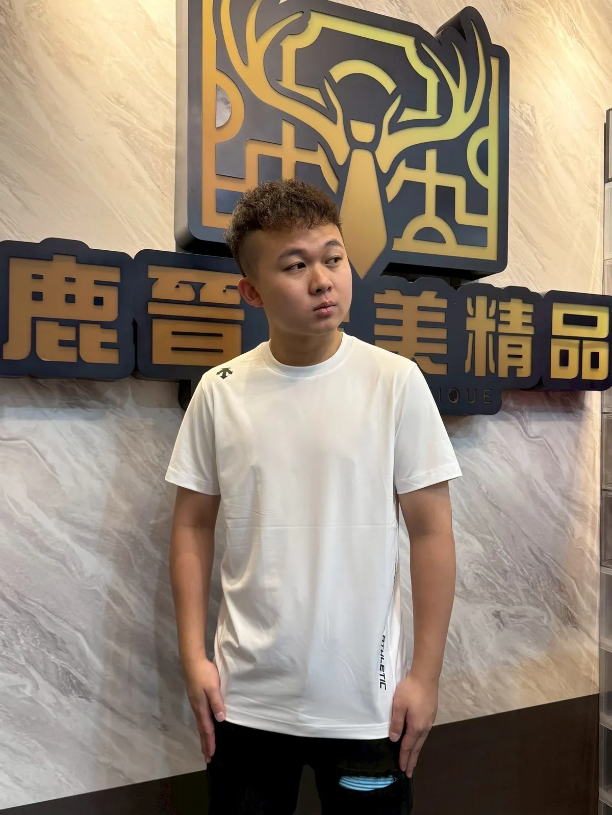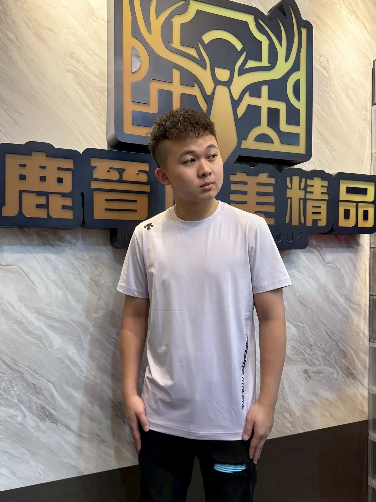 【Luu Quiet】迪桑特 右肩箭頭左側標語文字短袖T恤