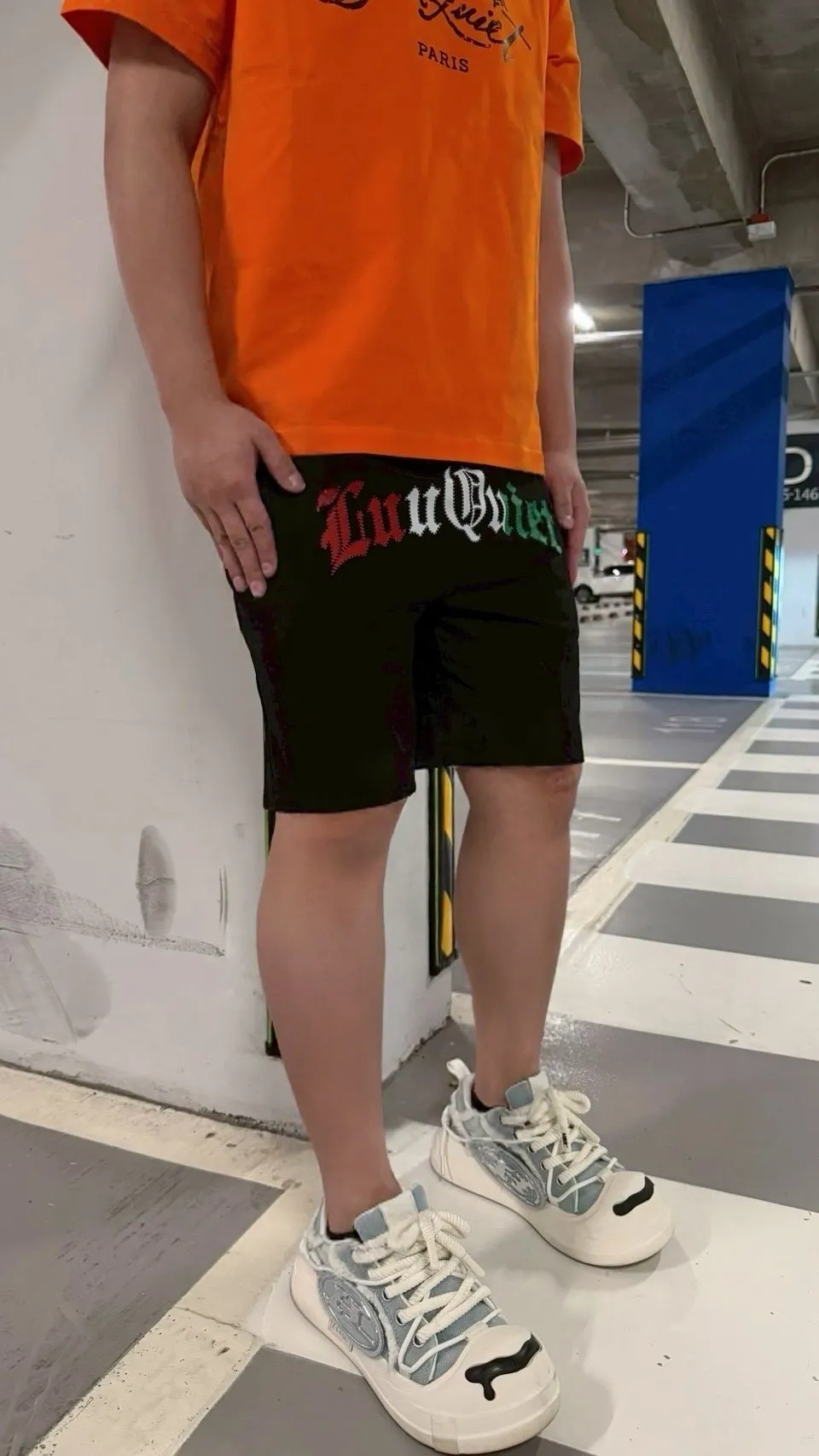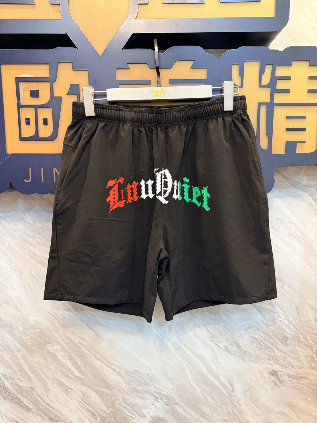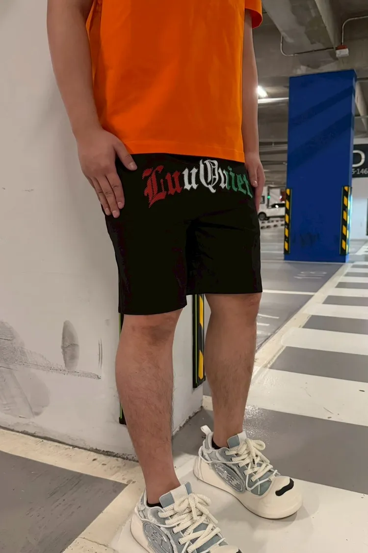 【Luu Quiet】黑底義大利歌德文字短褲