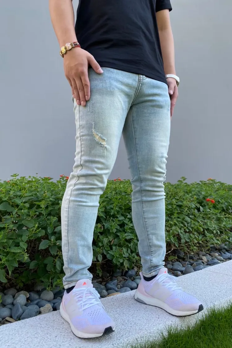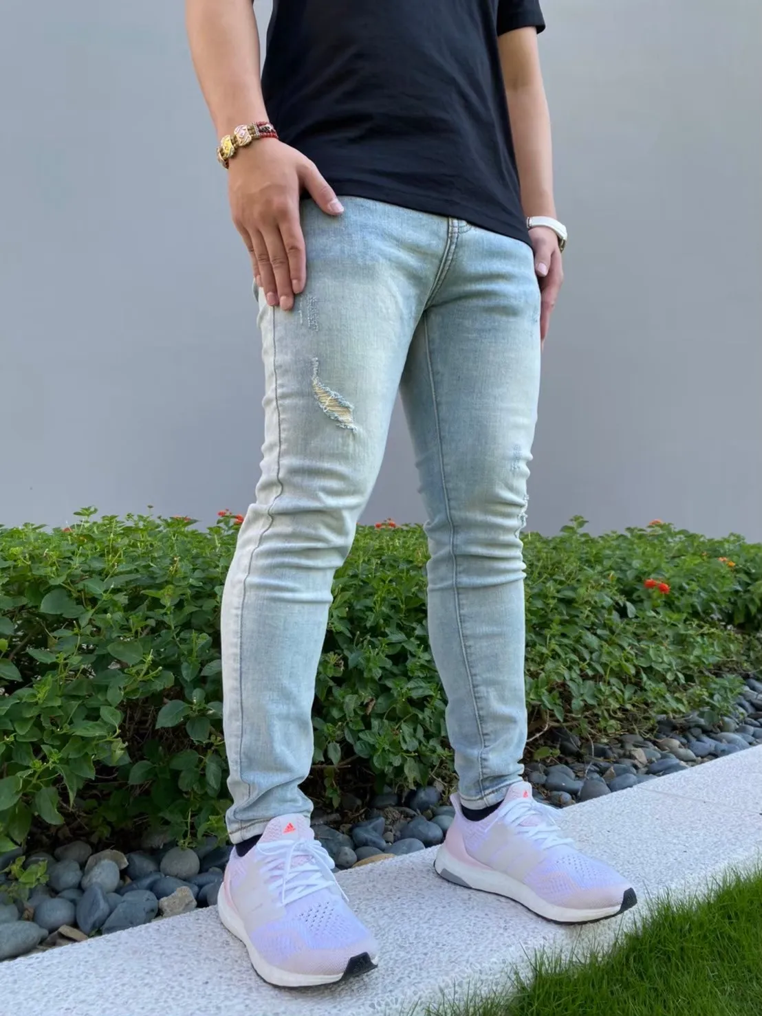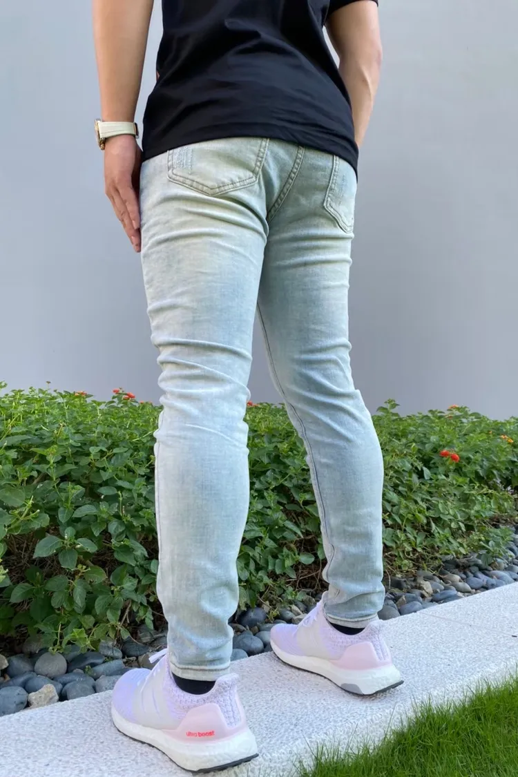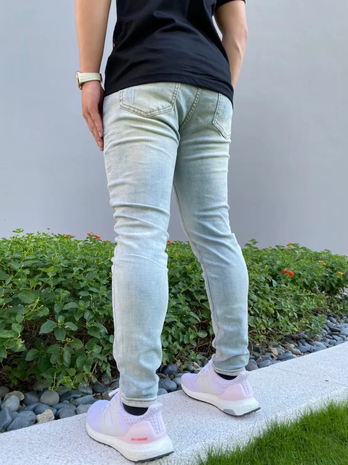 【Luu Quiet】11代水洗淺色雲白天空藍牛仔褲