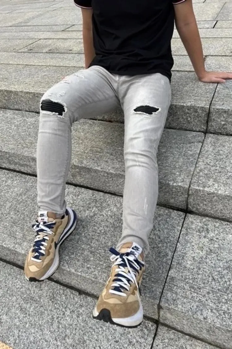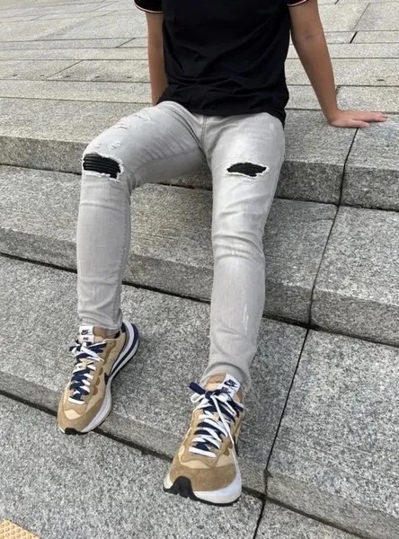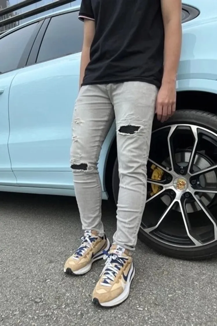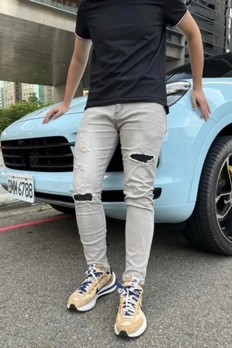 【Luu Quiet】10代刀割破壞灰牛仔褲