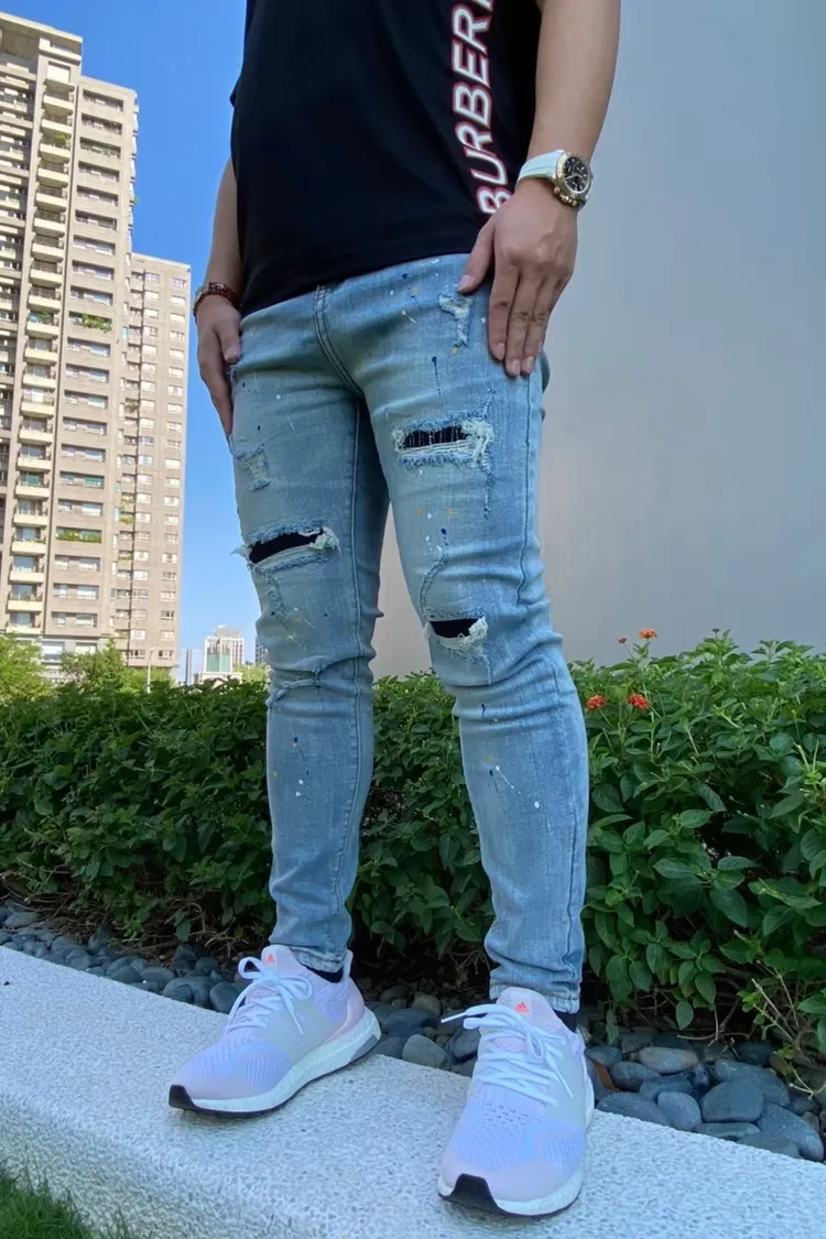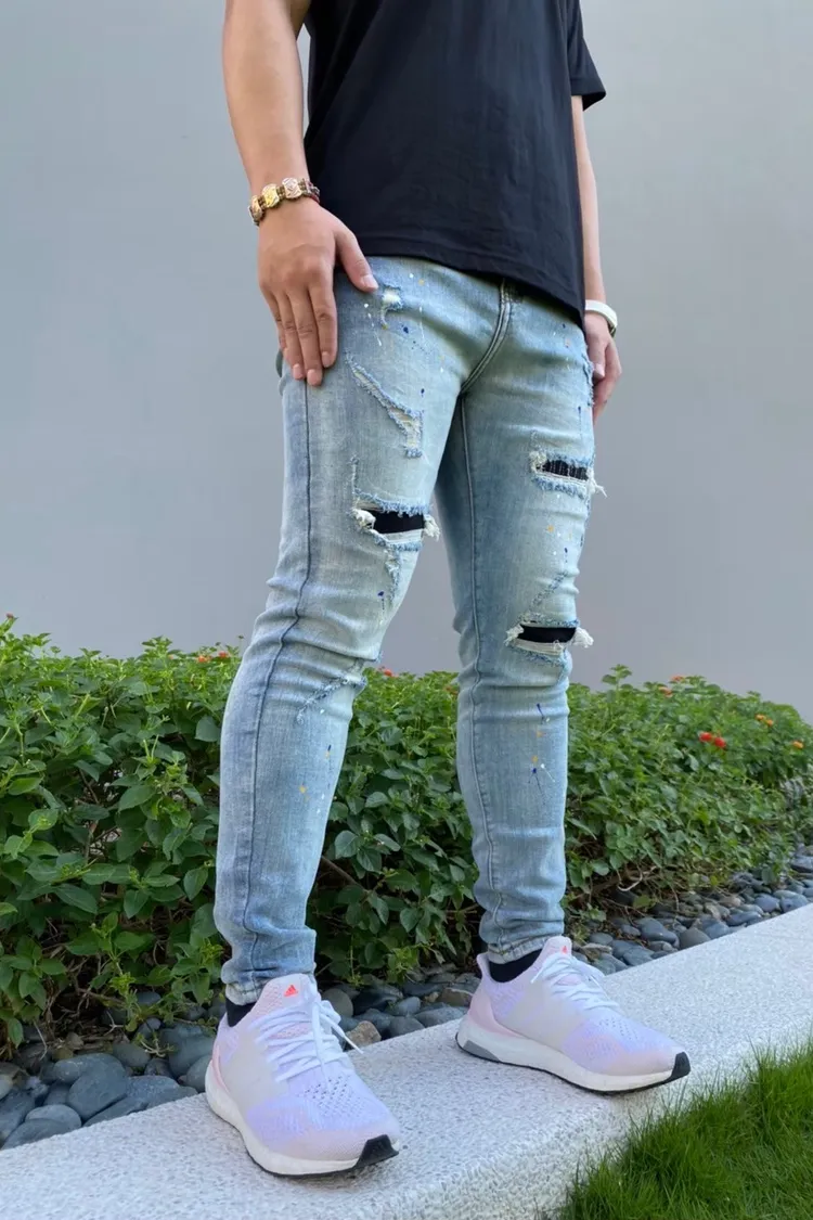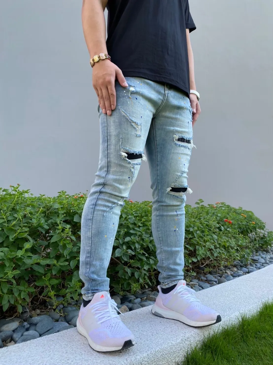 【Luu Quiet】12代刷破補釘潑漆牛仔褲