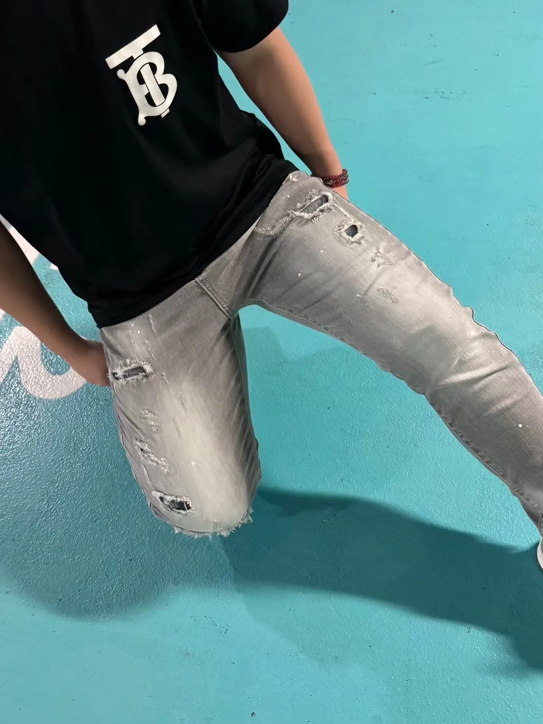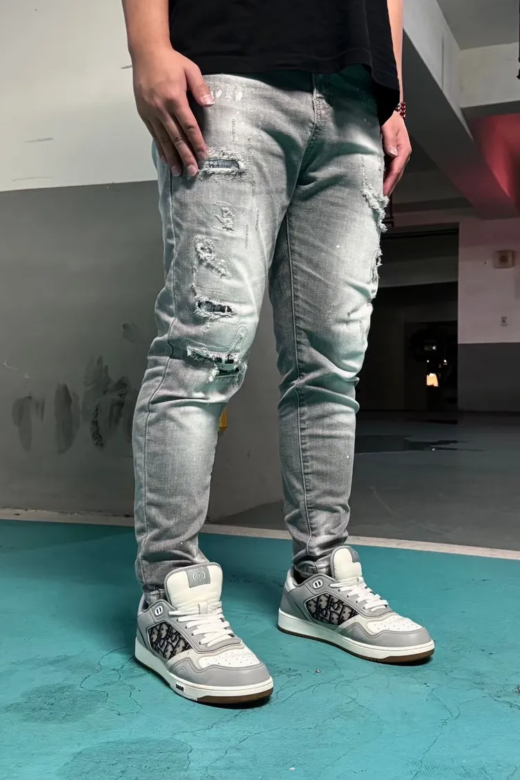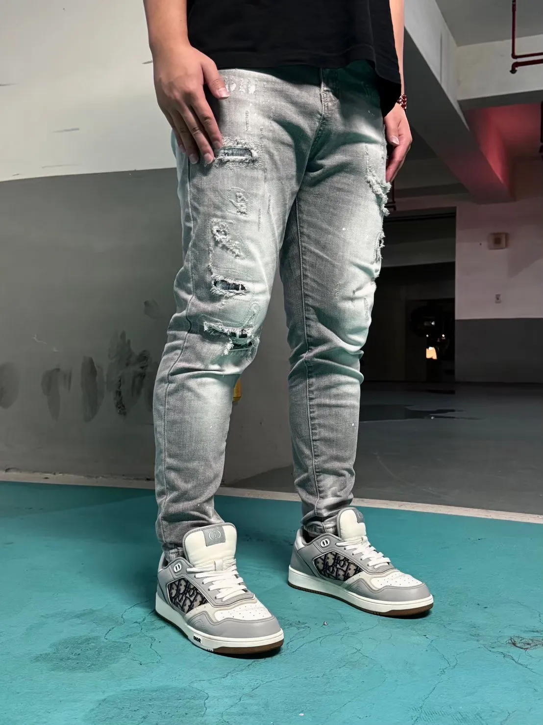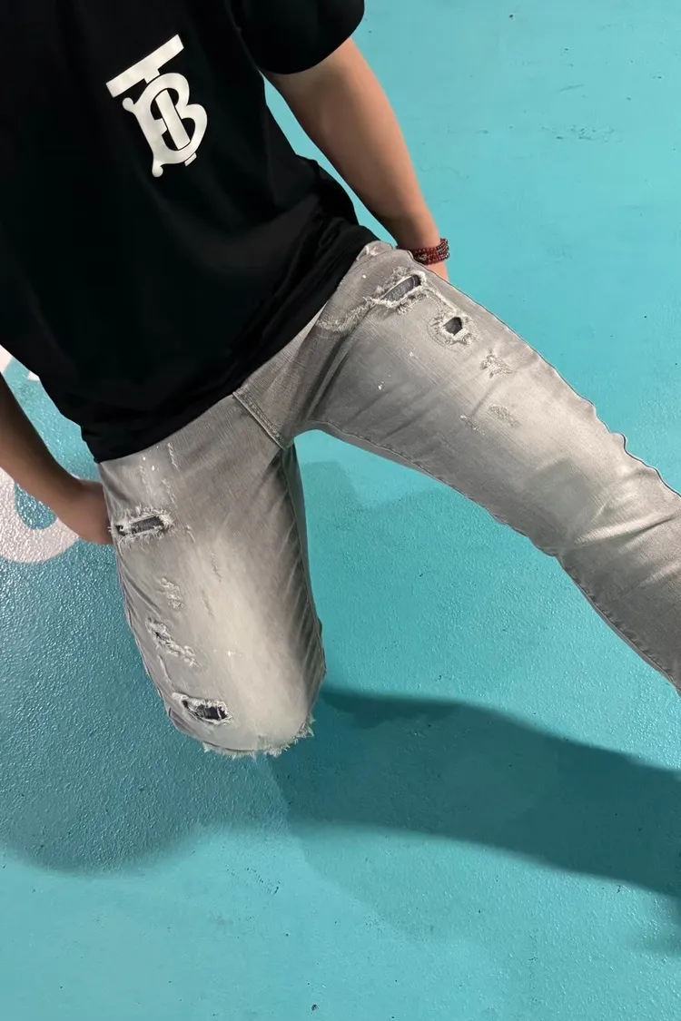 【Luu Quiet】15代莫蘭迪灰刷白刷破牛仔褲