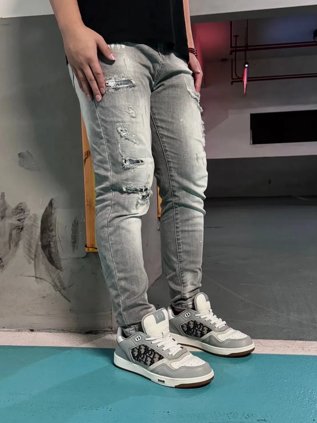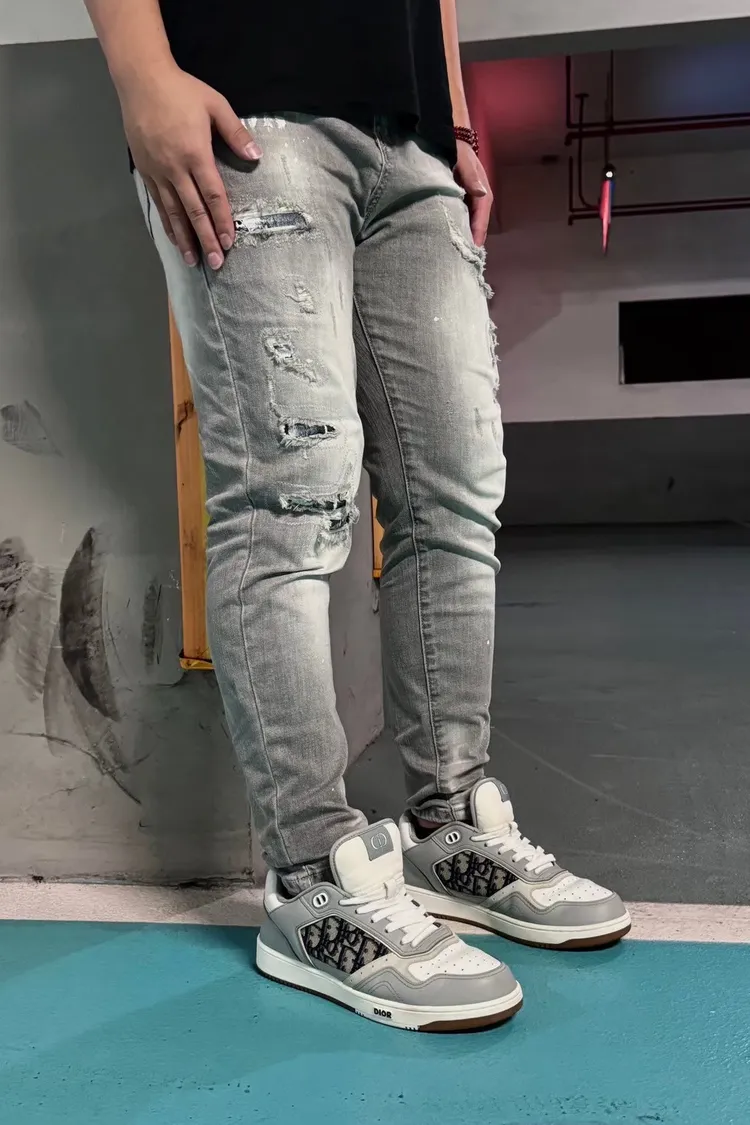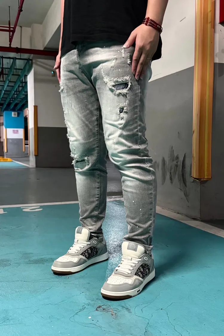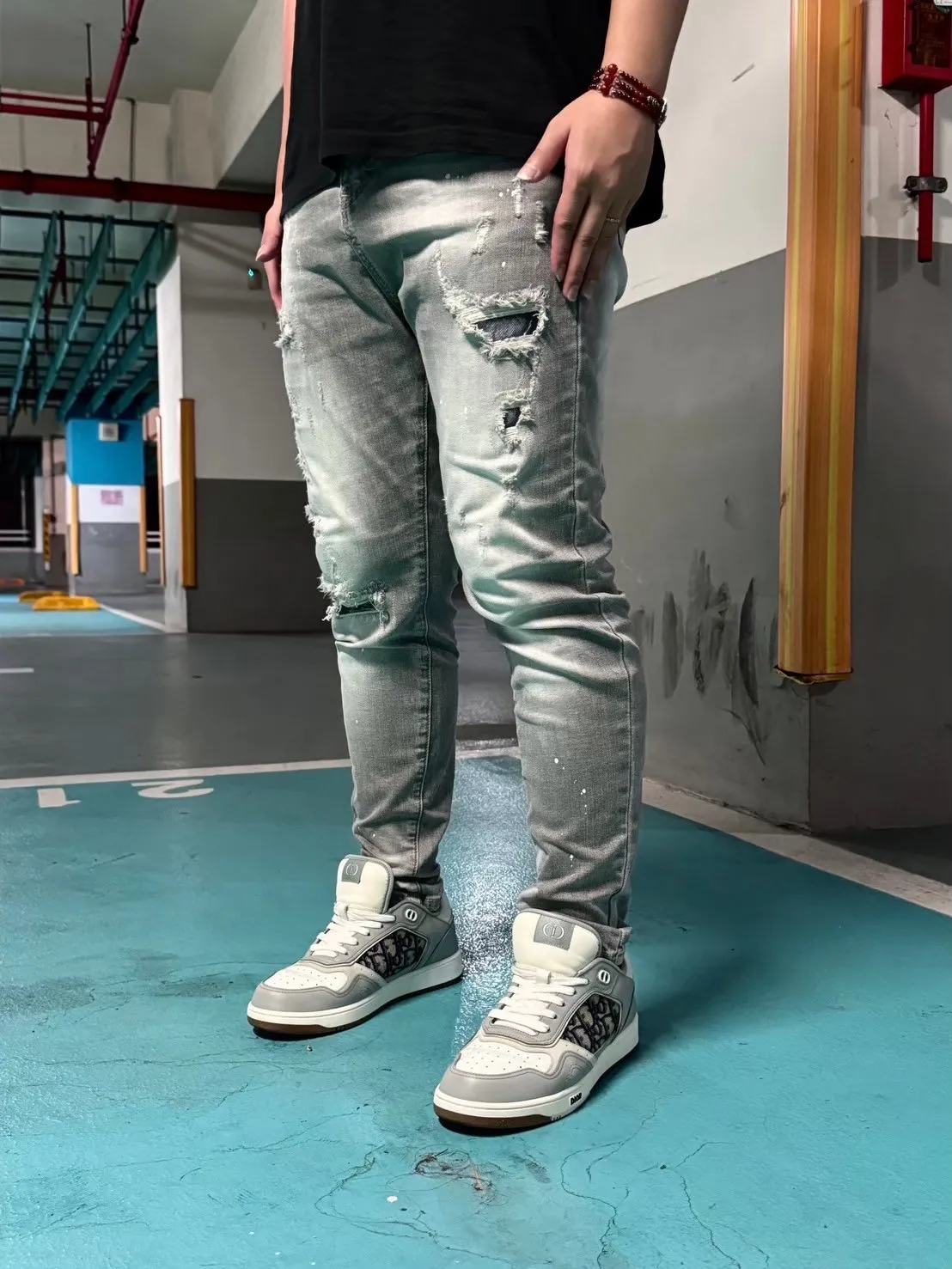 【Luu Quiet】15代莫蘭迪灰刷白刷破牛仔褲