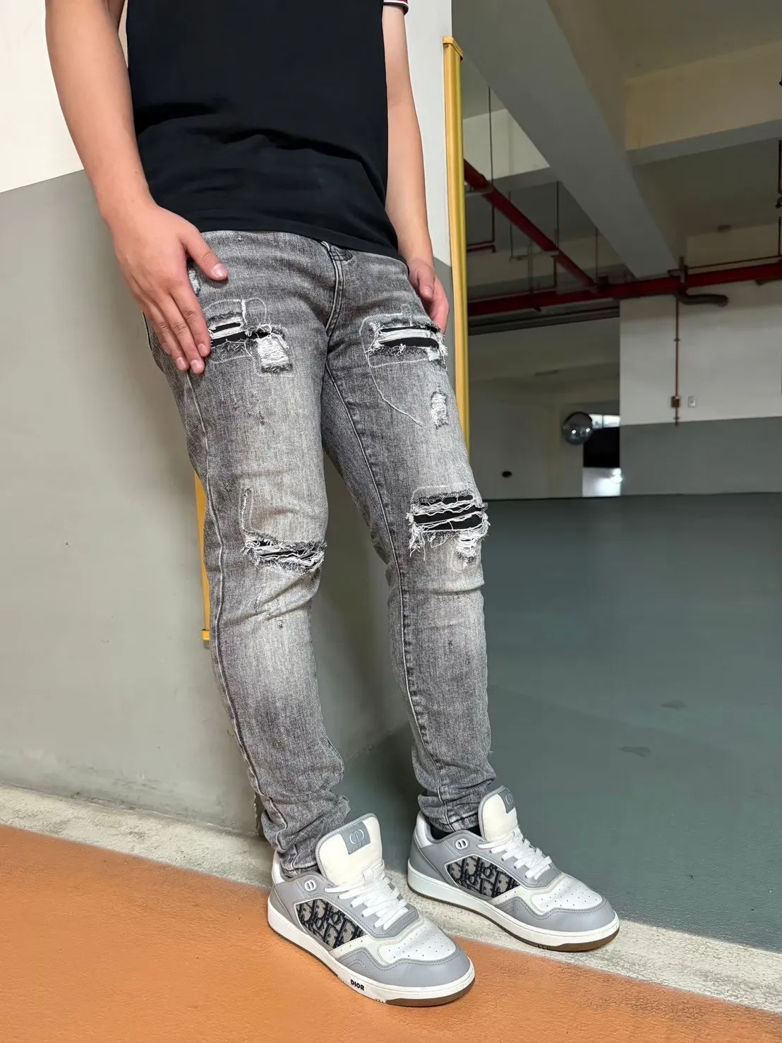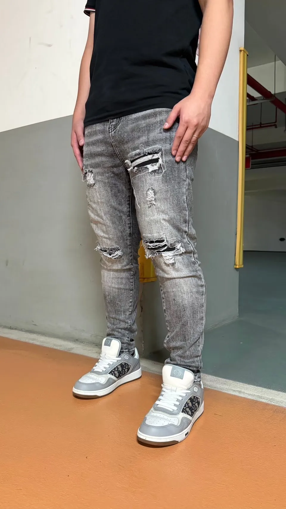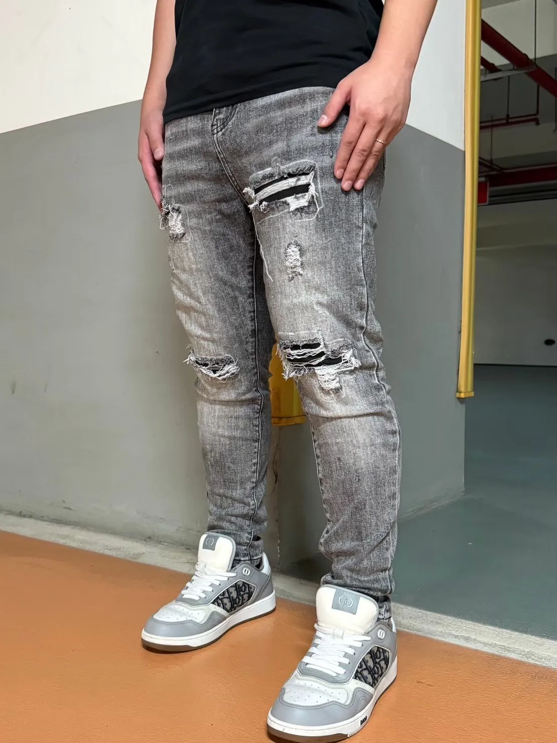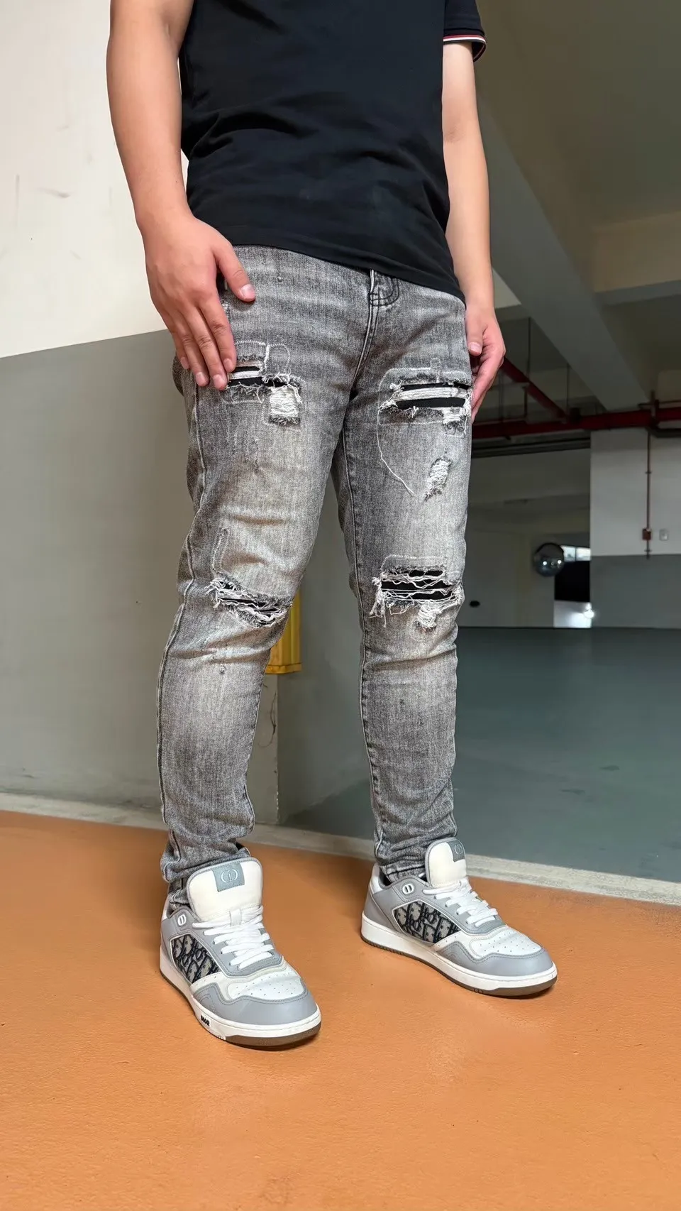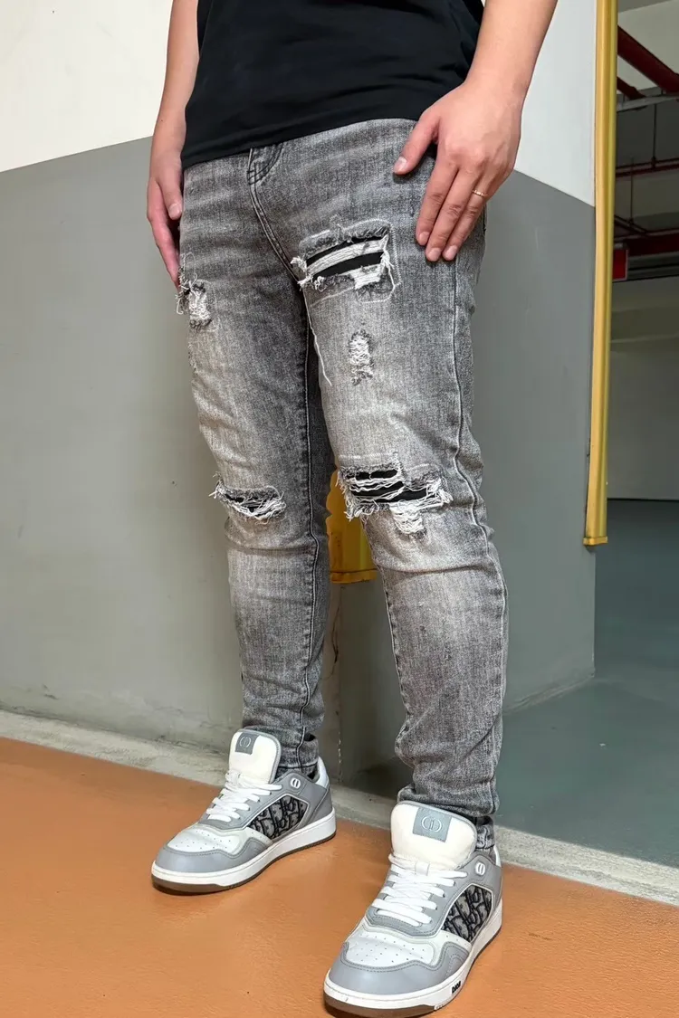 【Luu Quiet】17代灰底刷白月球隕石牛仔褲