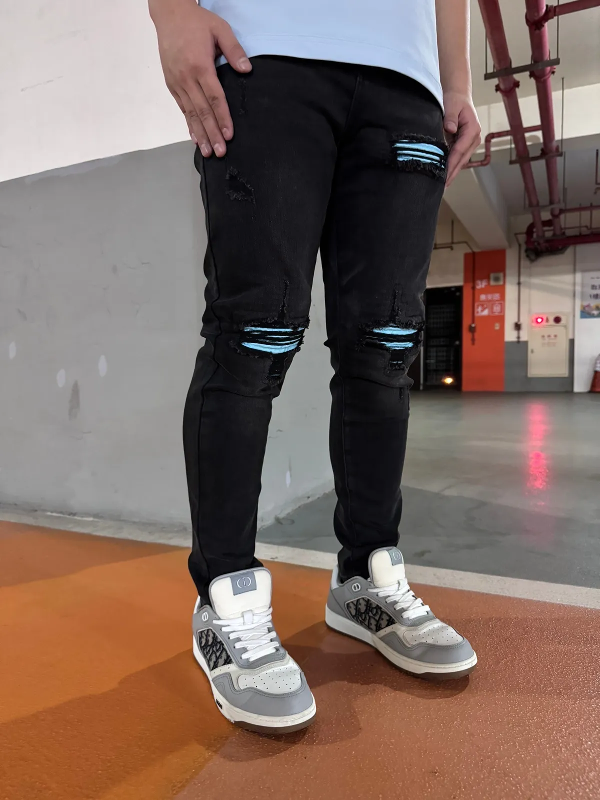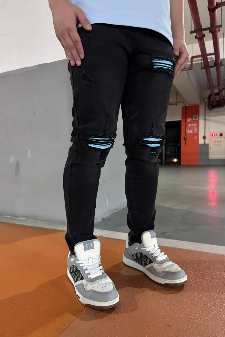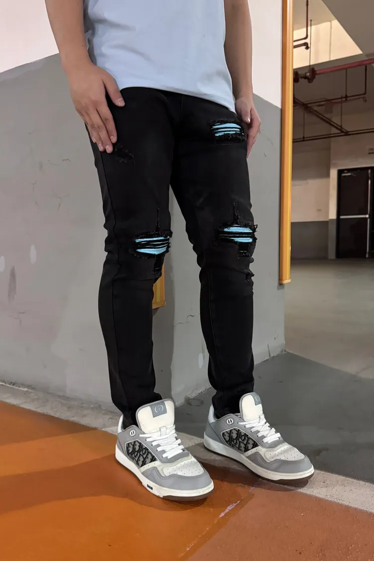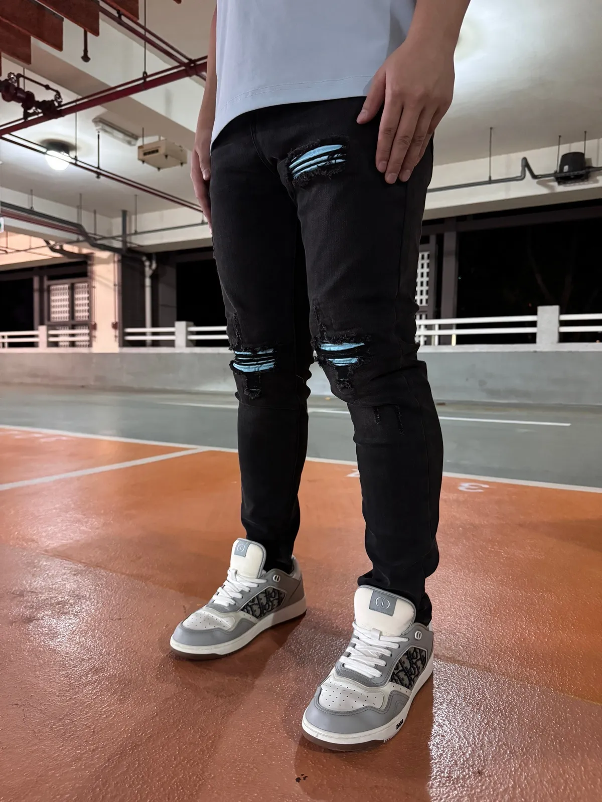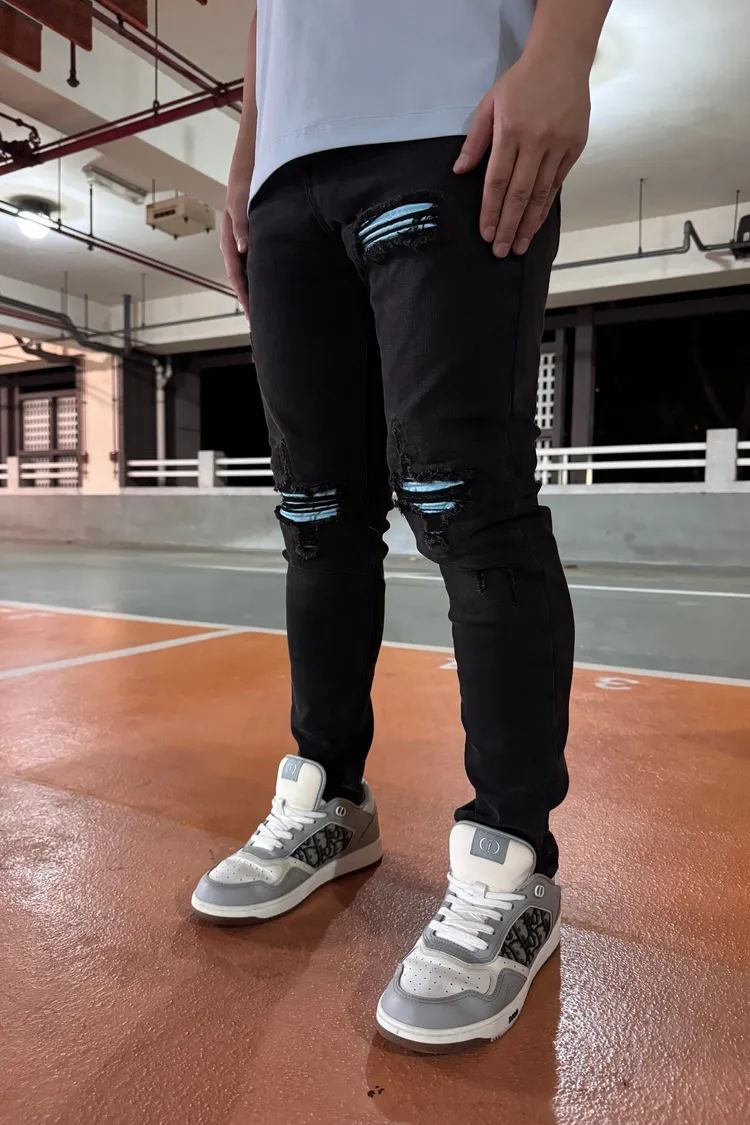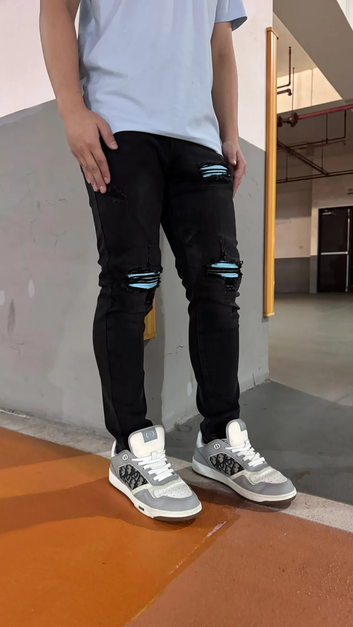 【Luu Quiet】18代黑灰寶寶藍壓皺牛仔褲