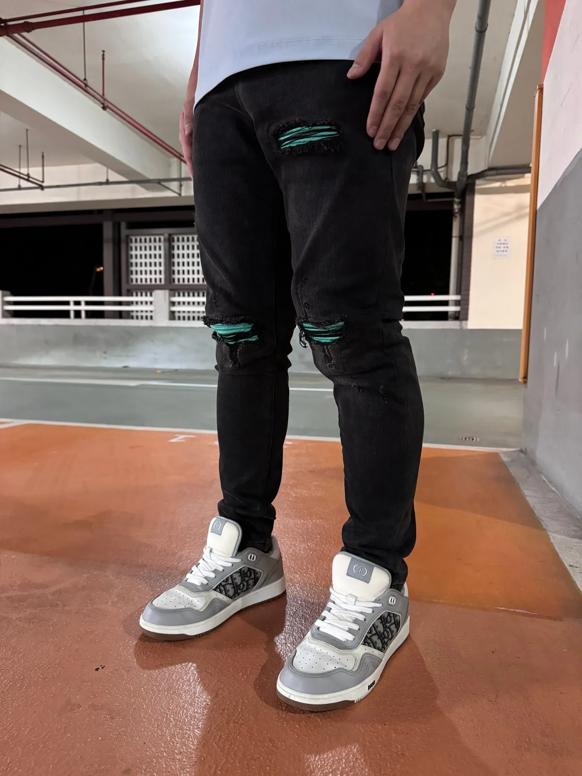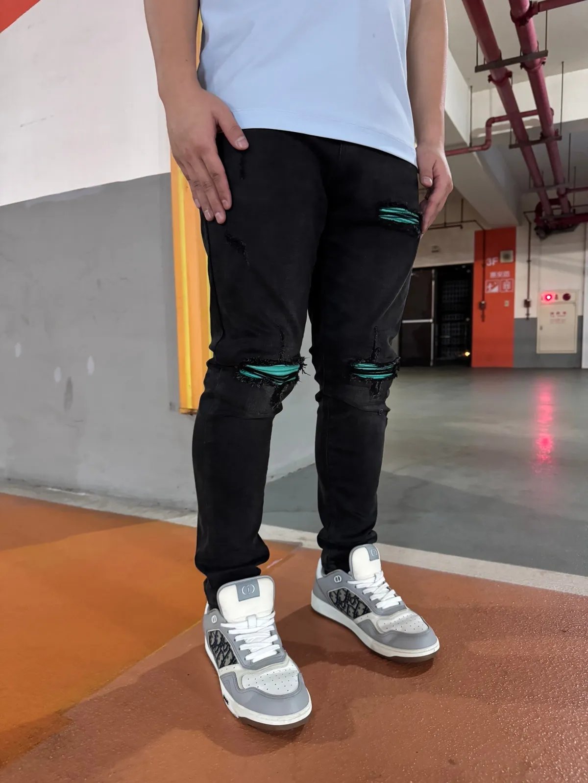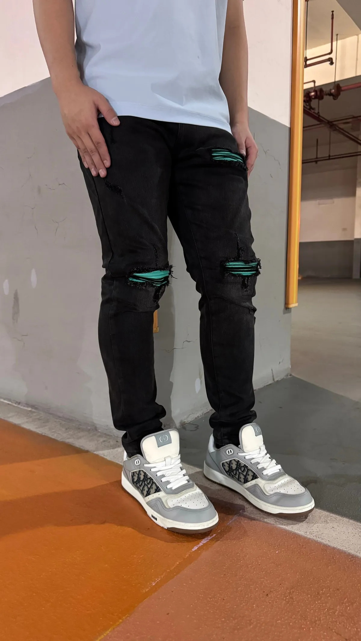 【Luu Quiet】18代黑灰薄荷綠壓皺牛仔褲