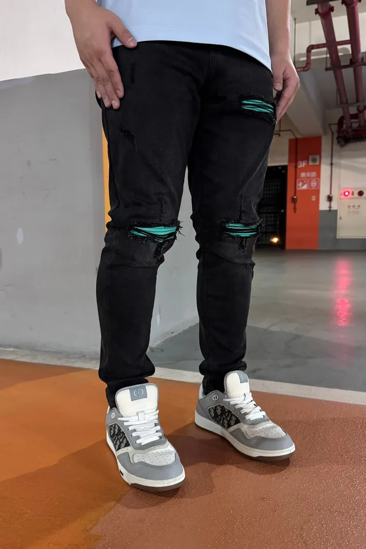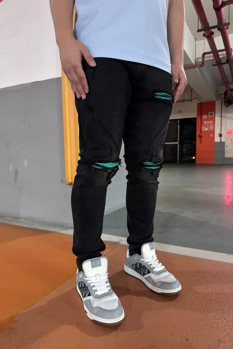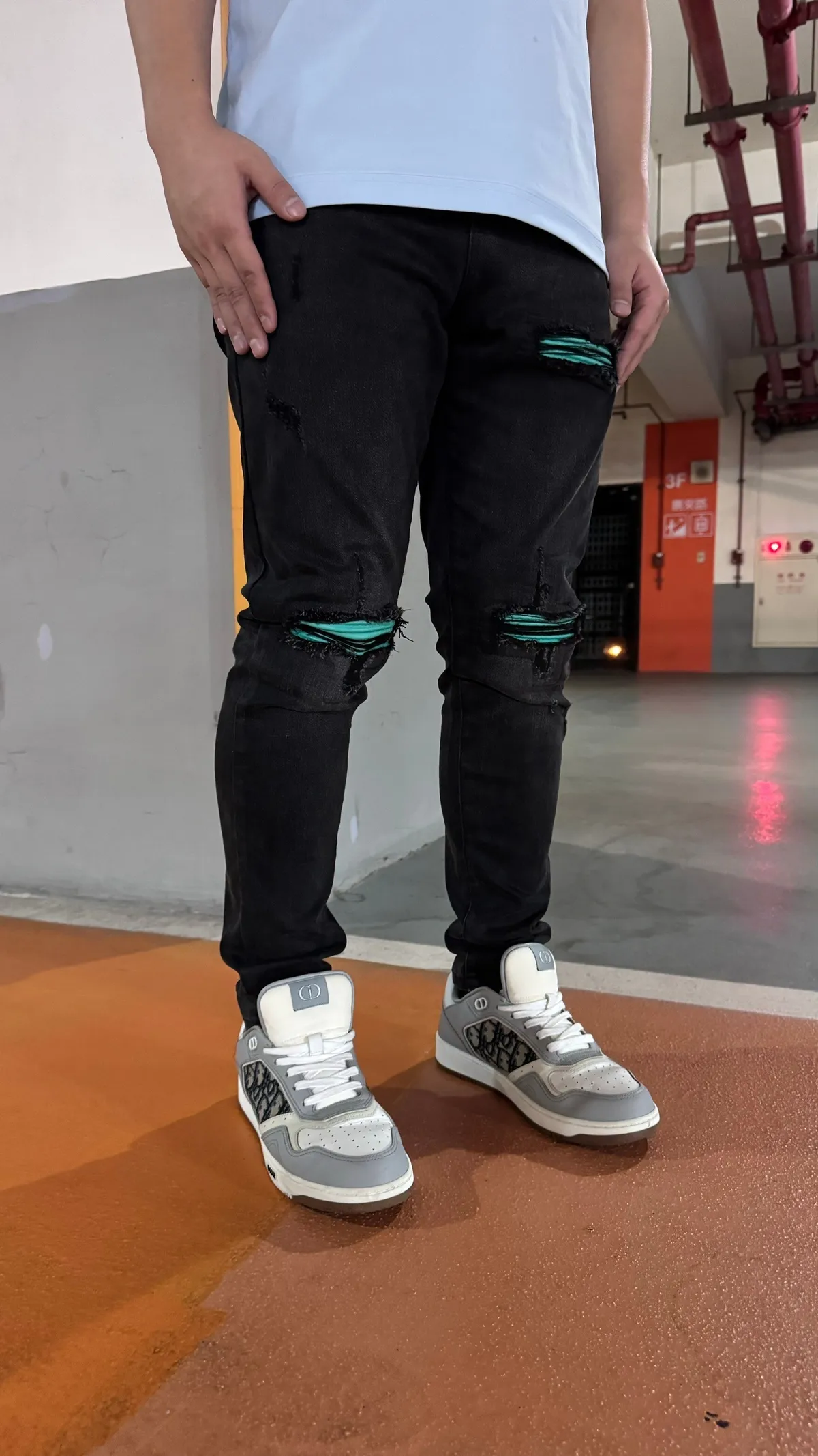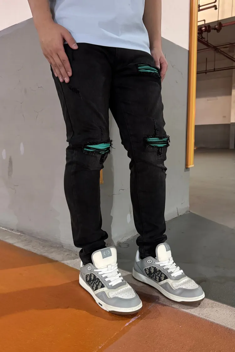 【Luu Quiet】18代黑灰薄荷綠壓皺牛仔褲