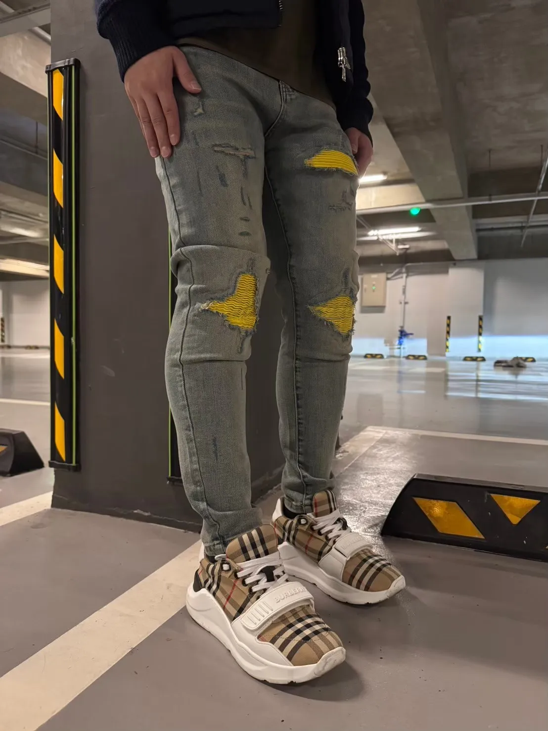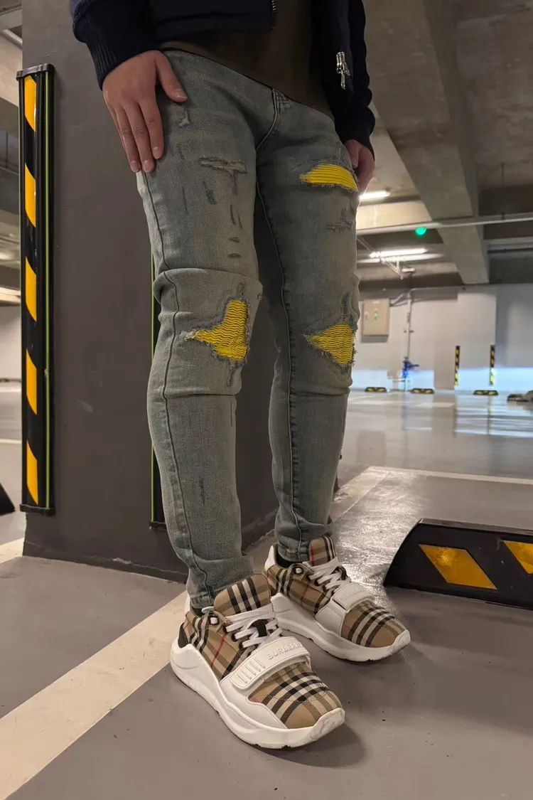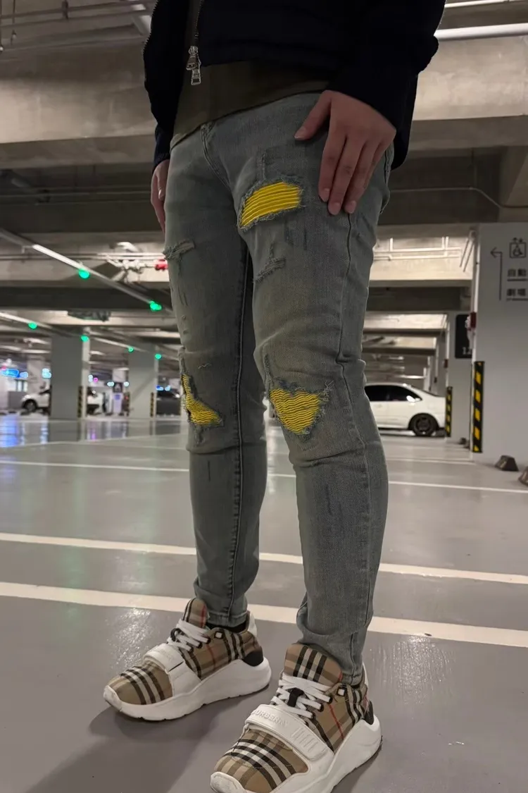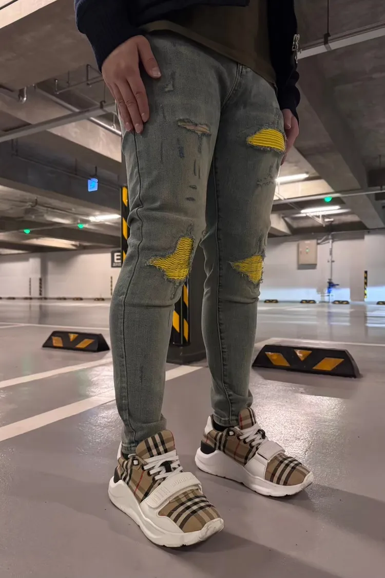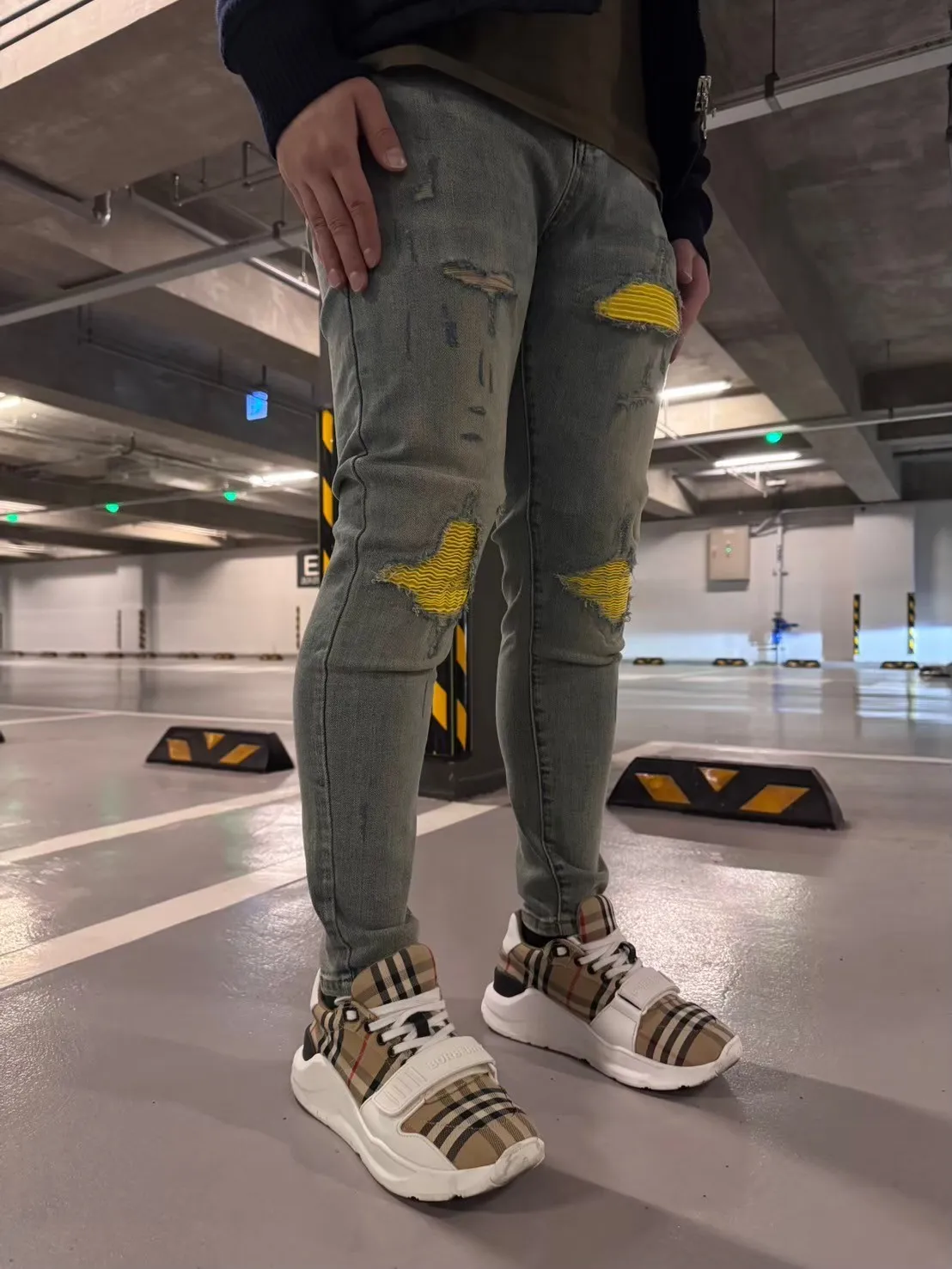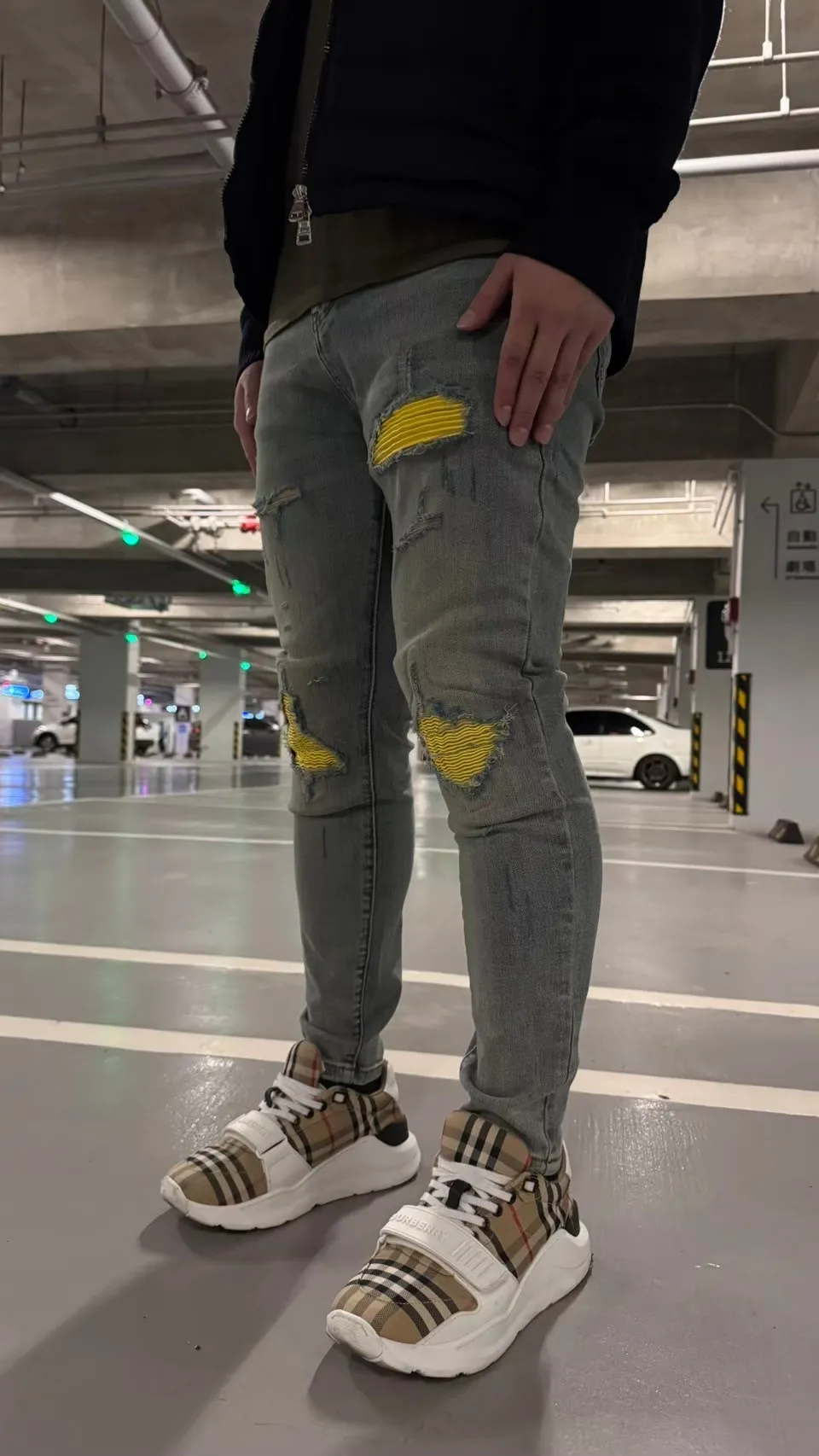 【Luu Quiet】19代仿舊閃電黃壓皺牛仔褲