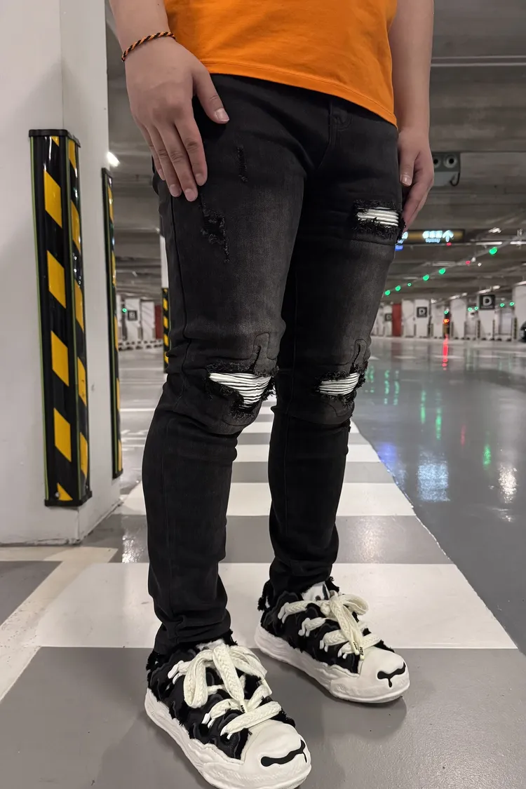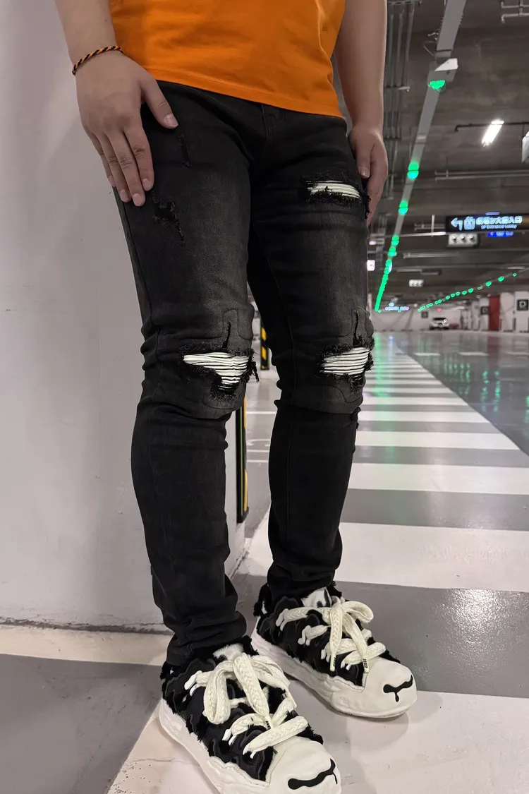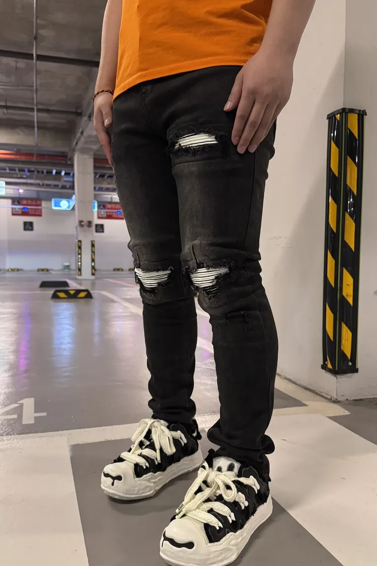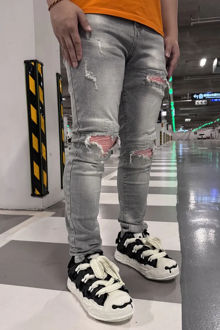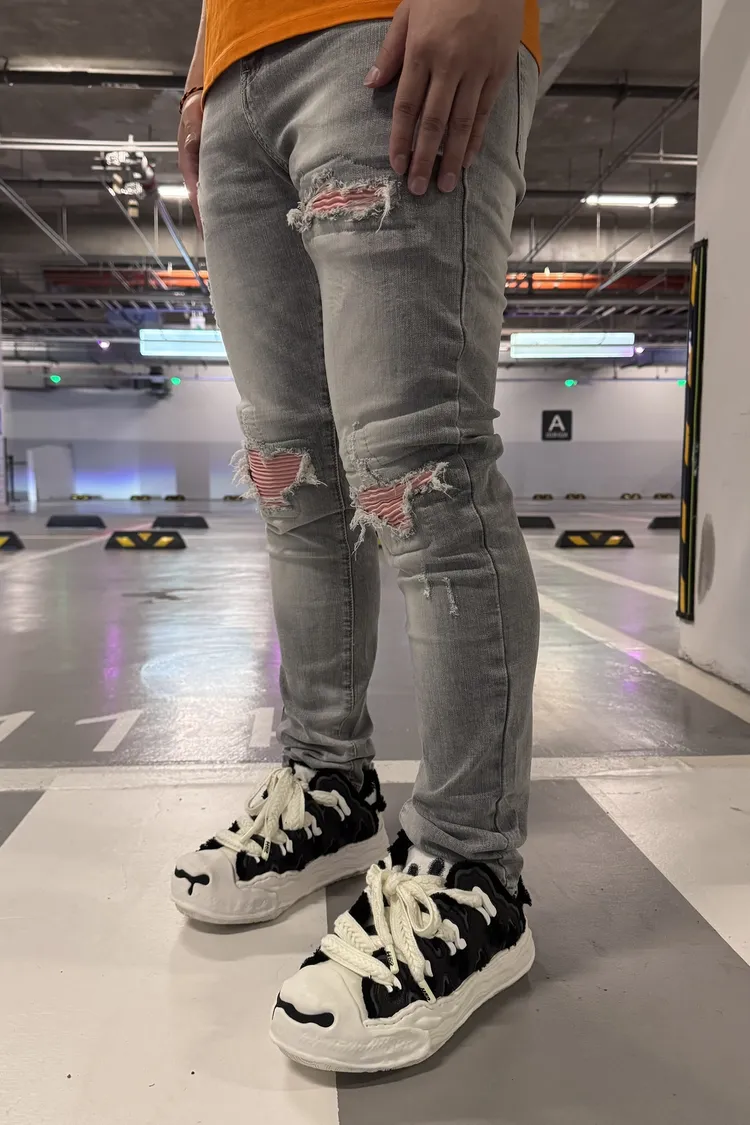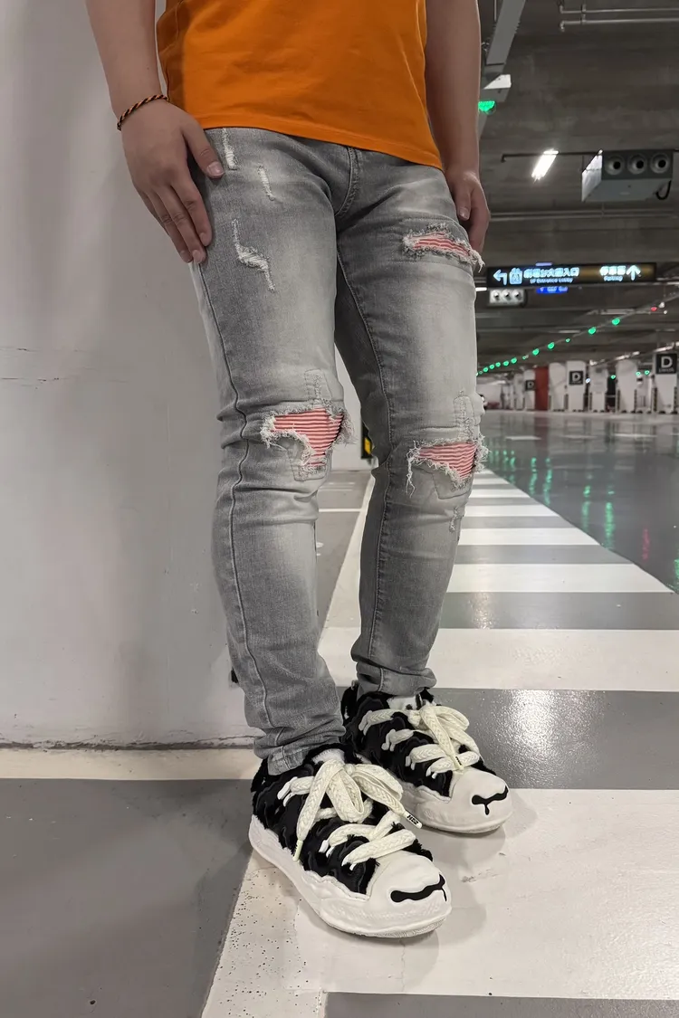 【Luu Quiet】21代質感黑灰白/莫蘭迪灰粉超彈力牛仔褲